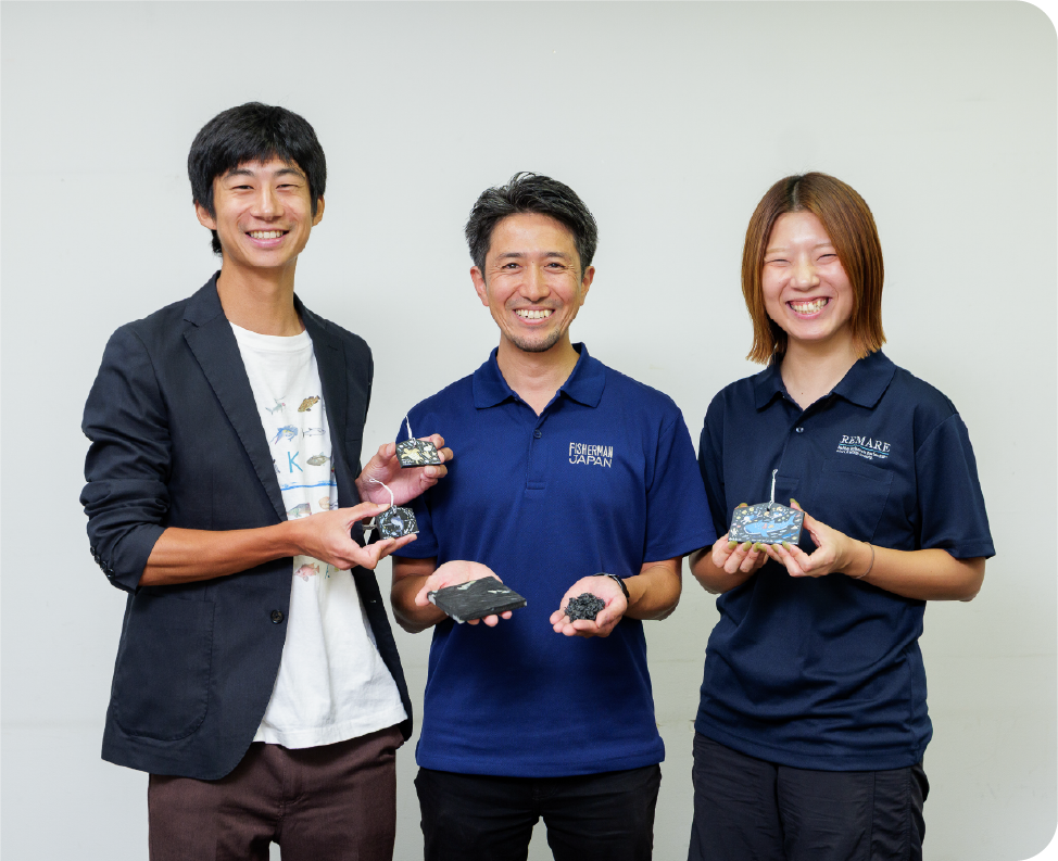 その中で、サステナビリティ・サーキュラーエコノミーなど幅広い分野でのウェブメディアを企画・運営するハーチ株式会社、漁業就業者の育成や漁業の魅力などを発信するフィッシャーマン・ジャパン、複合プラスチックのマテリアルリサイクルを手がける株式会社 REMAREが中心となって実現したのが「UMI-EMA」です。