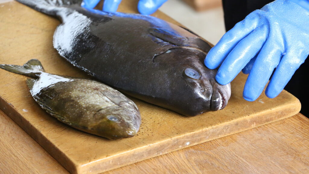 続いて、有限会社丸徳水産では、磯焼けの原因の一つとされる食害魚についての説明を受けるとともに、実際に磯焼けが進行している現場を視察しました。海藻が失われていく現状と、それが漁業や生態系に与える影響について、現場ならではのリアルな声が共有されました。