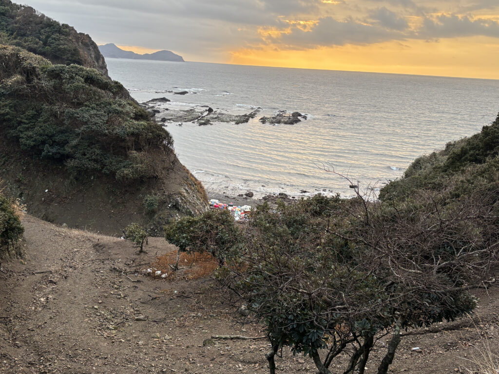 伝承ツアーで海と山の課題を学んだ後、参加者は実際に海岸へ足を運び、対馬を象徴する漂着プラスチックごみの現場であるクジカ浜を視察しました。